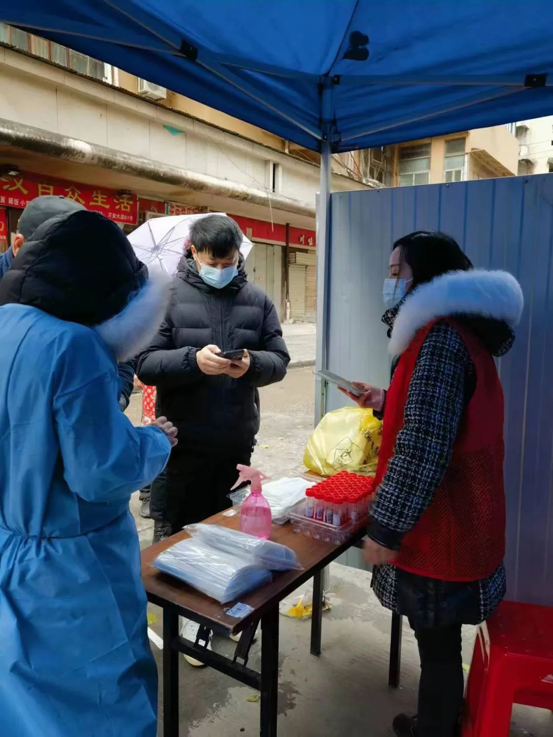? ? ? ?“請?jiān)谶@里掃碼,注意排隊(duì)保持安全距離。”11月30日,在漢正街道萬安社區(qū)核酸采樣點(diǎn),碧投公司志愿者不斷向前來咨詢的居民介紹注意事項(xiàng)、引導(dǎo)排隊(duì)秩序、進(jìn)行掃碼登記。? ? ?