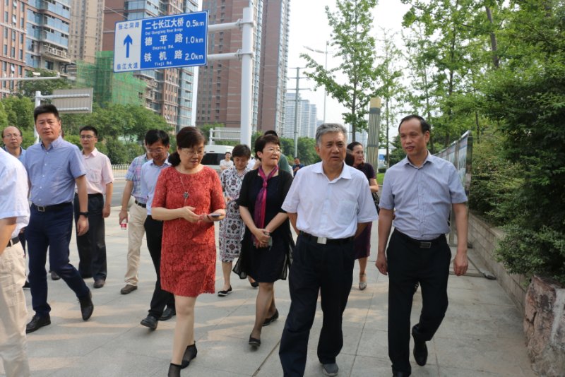 6月25日下午,民建中央副主席吳曉青等一行來到青山江灘,現場查看生態型江灘建設工程,調研長江生態環境系統性保護修復工作。