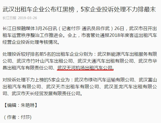 ? ?據(jù)長(zhǎng)江日?qǐng)?bào)融媒體3月26日訊,機(jī)總公司所屬武漢天河機(jī)場(chǎng)出租汽車公司在武漢市召開出租車運(yùn)營(yíng)秩序整治工作推進(jìn)會(huì)上,被市客管處評(píng)為2018年度客運(yùn)出租汽車經(jīng)營(yíng)企業(yè)處理投訴較好的紅榜企業(yè)。