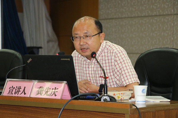為深入學習貫徹習近平新時代中國特色社會主義思想和習近平總書記在全國兩會期間系列重要講話精神,堅定不移推進全面從嚴治黨向基層延伸,根據市委統一部署和集團公司黨委安排。5月18日,碧水集團舉辦了“市委講師團點單宣講活動走進武漢碧水集團”暨黨委中心組(擴大)學習會,邀請到了省委講師團成員、中南財經政法大學馬克思主義學院院長龔先慶教授為全體黨員干部開展了一場題為“堅定不移推進全面從嚴治黨”的精彩宣講。集團黨委書記、董事長丁心紅,黨委副書記、紀委書記夏斌,副總經理呂善功、劉霖,集團及各所屬企業140余名黨員參加了宣講會。